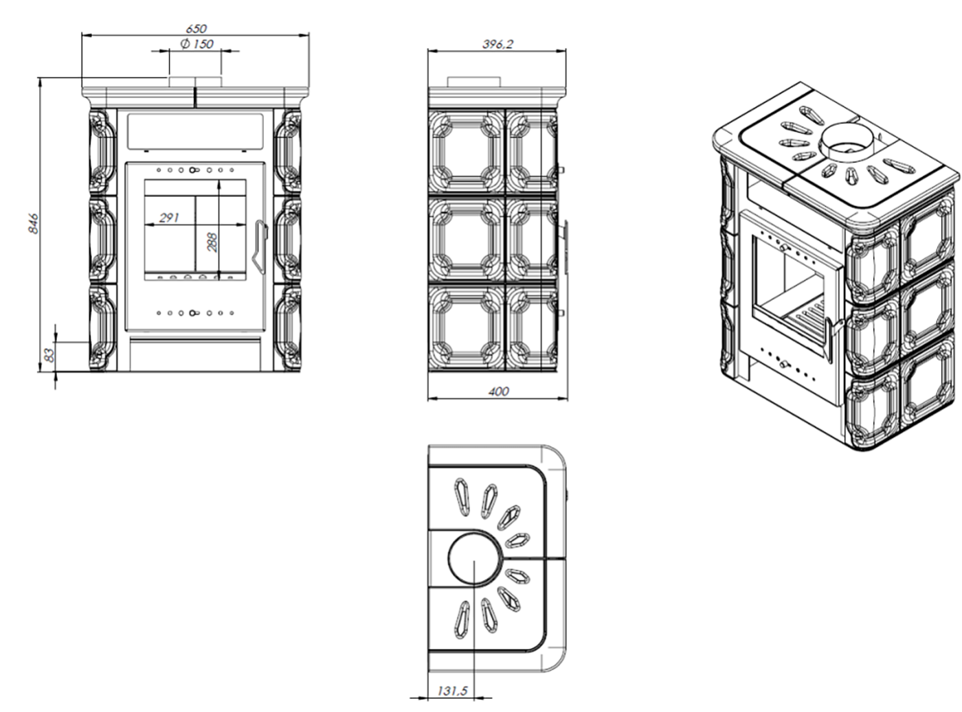 | Диаметр дымового патрубка | 150 мм |