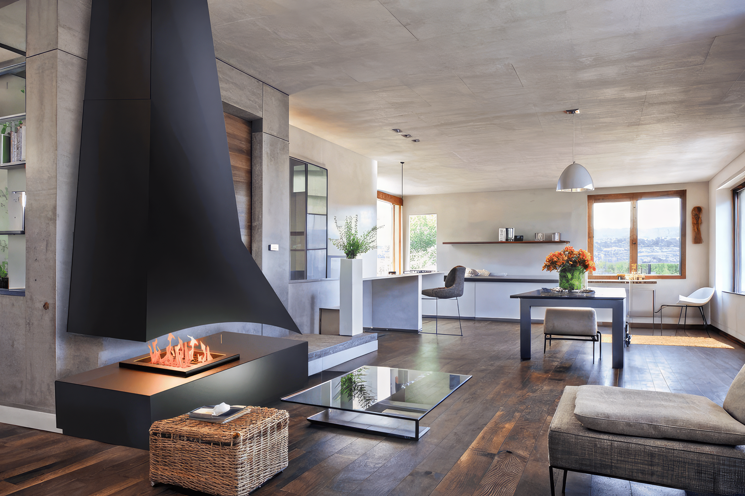Подходит для установки с электрокамином или биокамином, легко сочетается с различными стилями интерьера — от скандинавского до лофт.