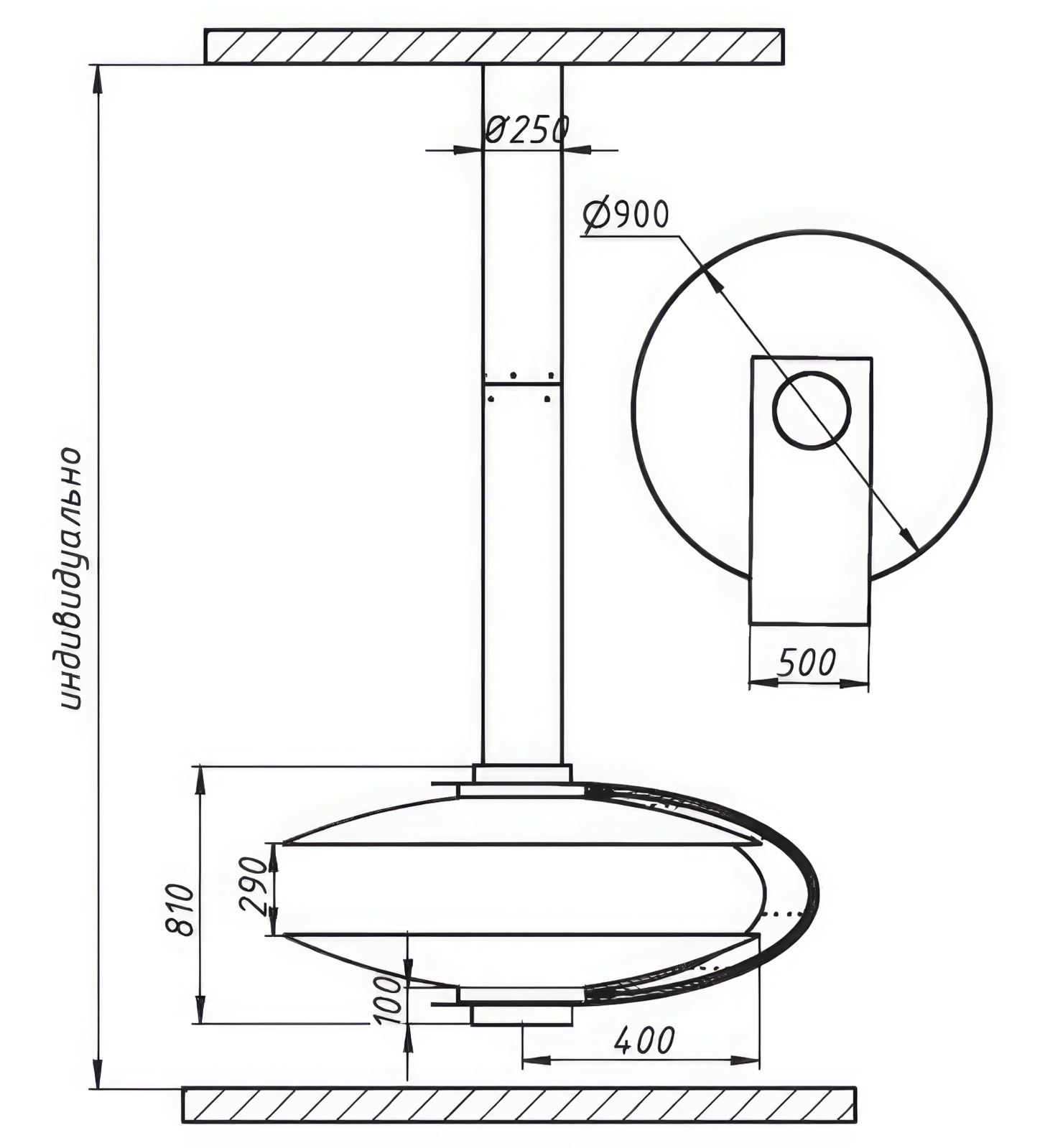 Центральная подвесная конструкция — эффект парения