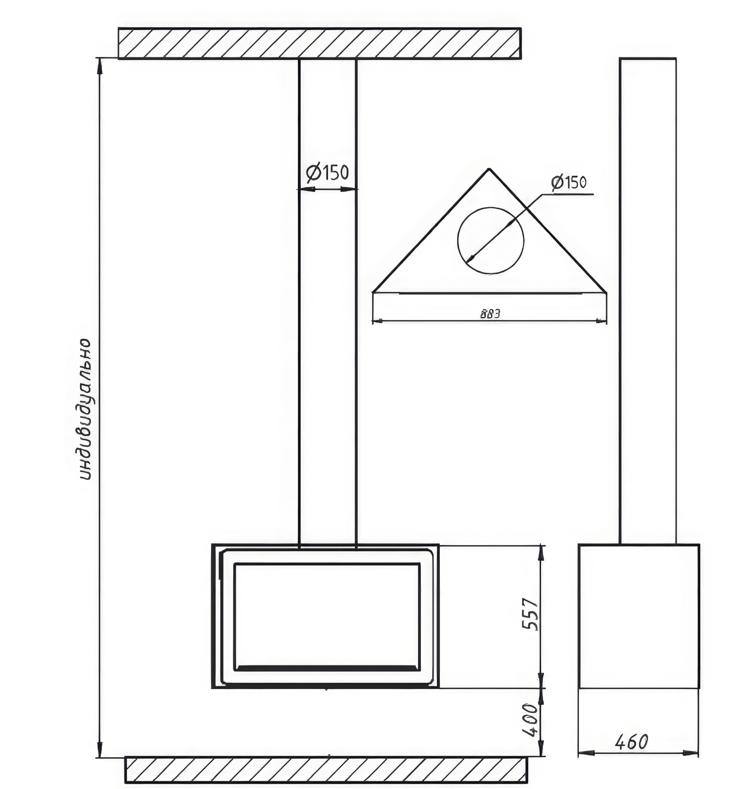 AVES 28 ГЕЛА — компактный подвесной камин с панорамным обзором огня