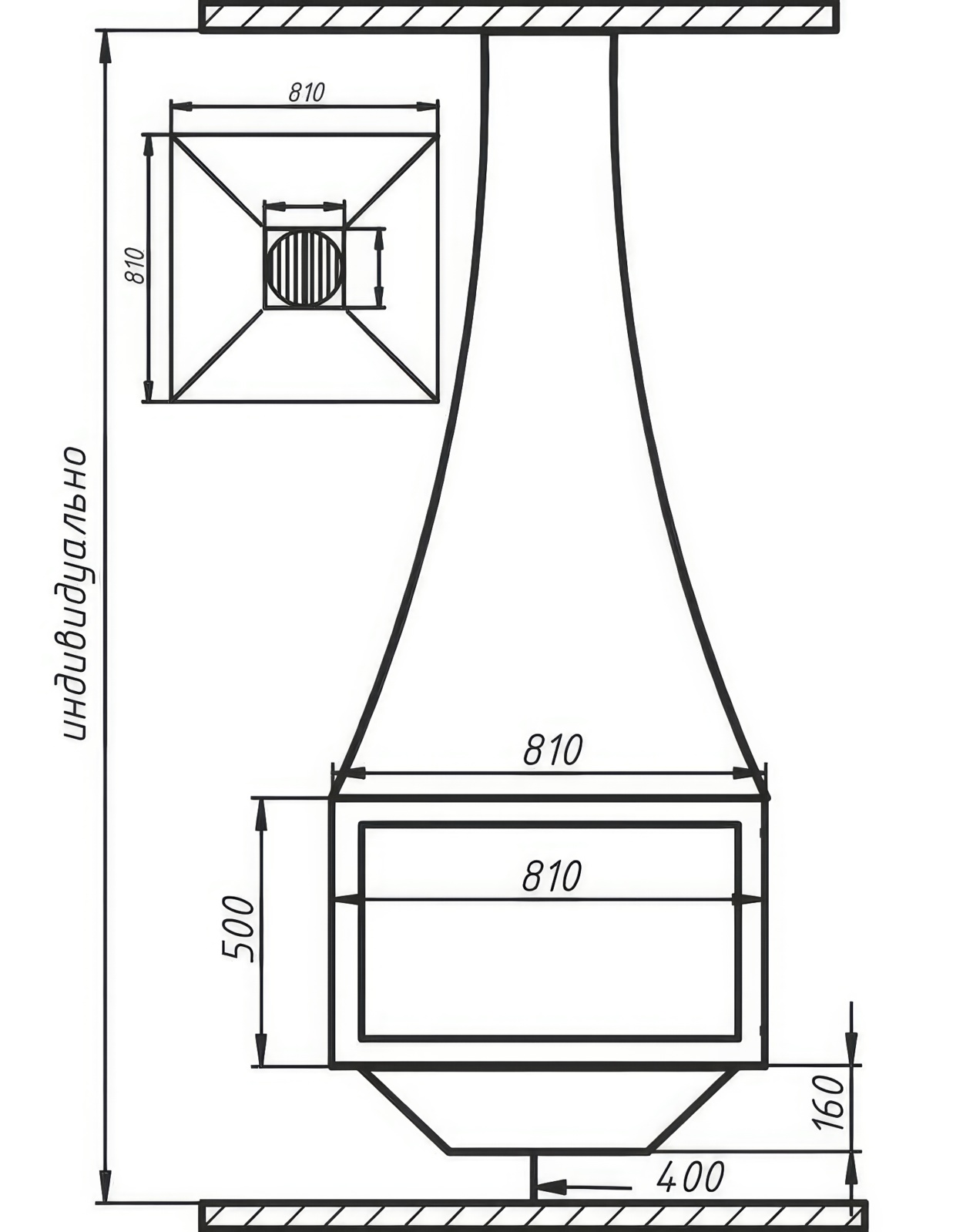 AVES 6 ПРАТО — подвесной дизайнерский камин с панорамным остеклением