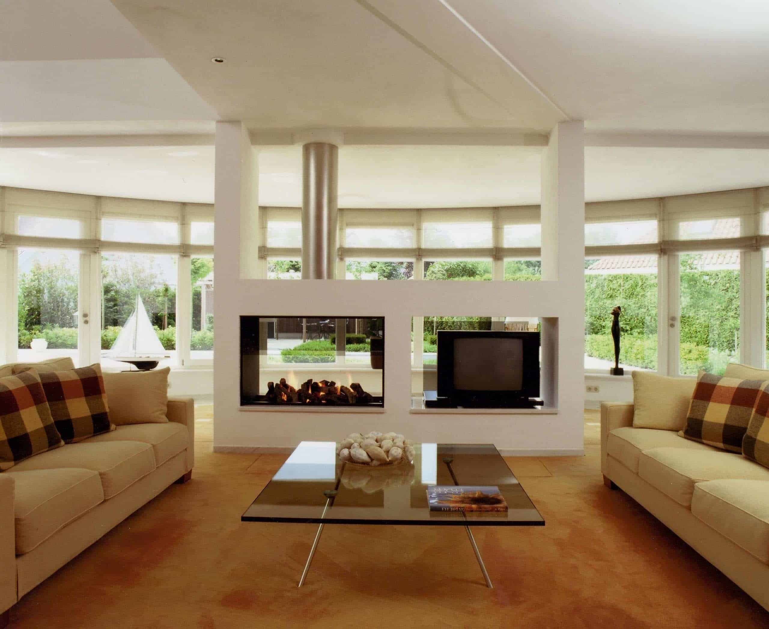 Данный камин открыт с двух сторон, с двумя перегородками/отделениями,