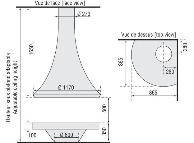 Чертеж углового открытого камина Eva 992 JC Bordelet: