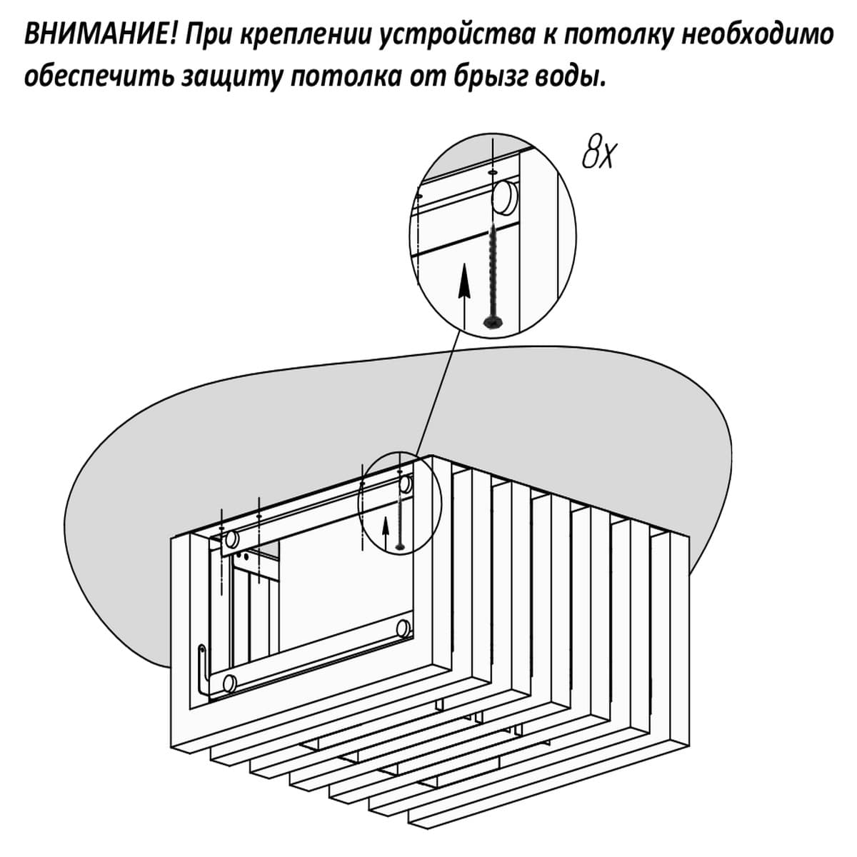 Конструкция устройства предусматривает возможность его установки как на стену, так и на потолок. При креплении устройства на стену необходим стеновой кронштейн - приобретается отдельно.