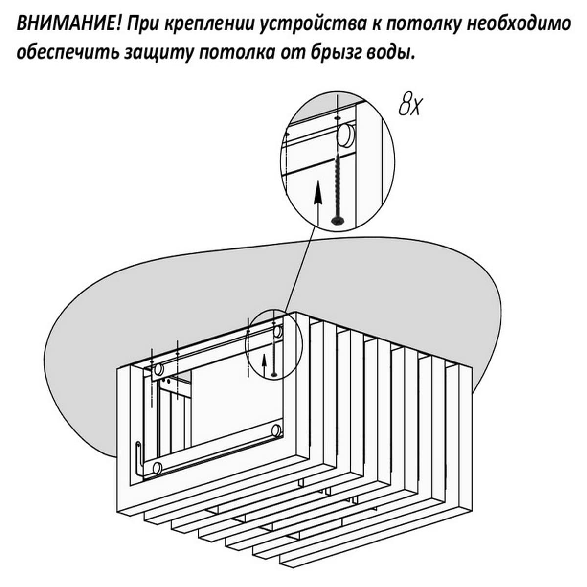 Комплект без декоративных ламелей позволяет установить устройство в потолок (скрытая установка) или декорировать устройство в своём стиле.